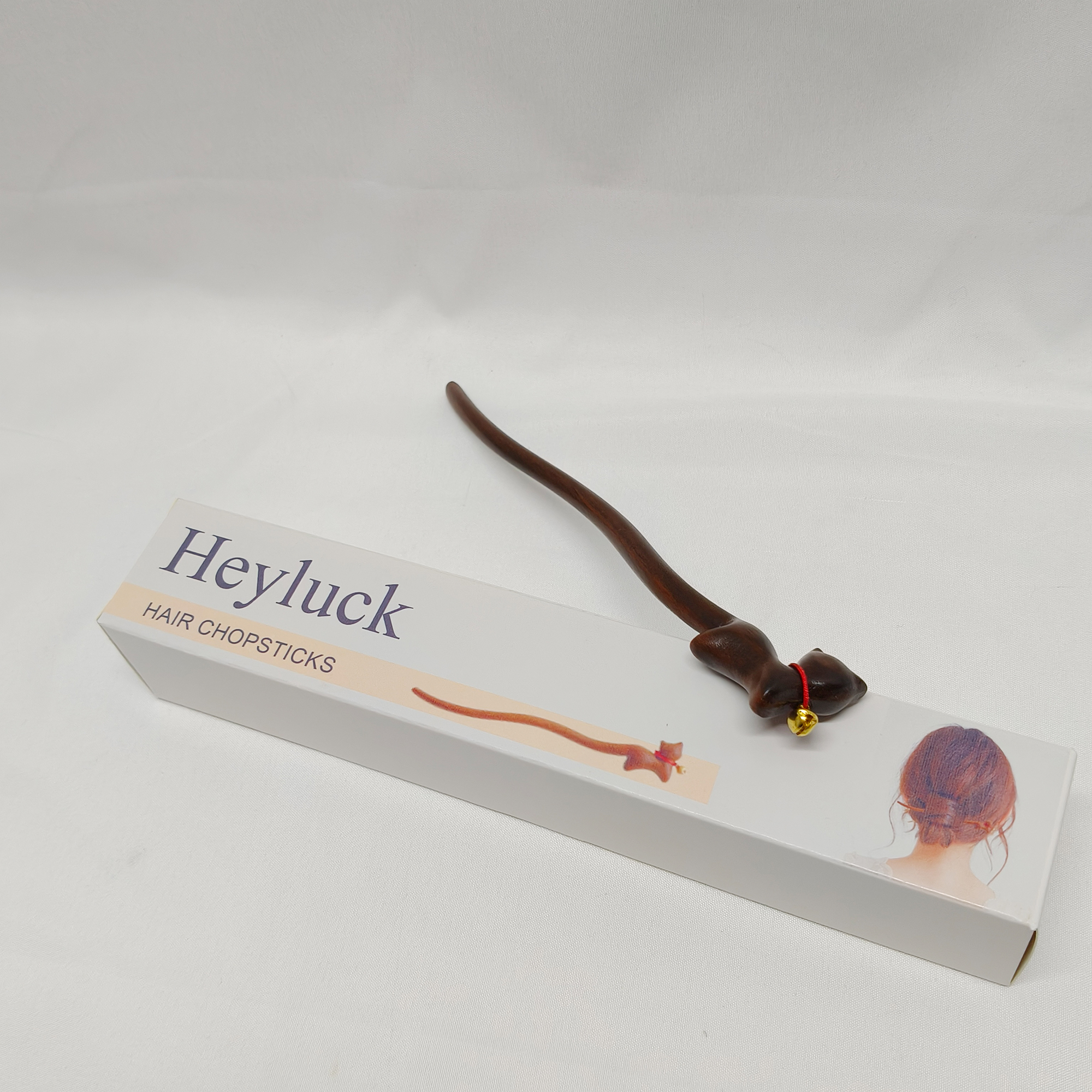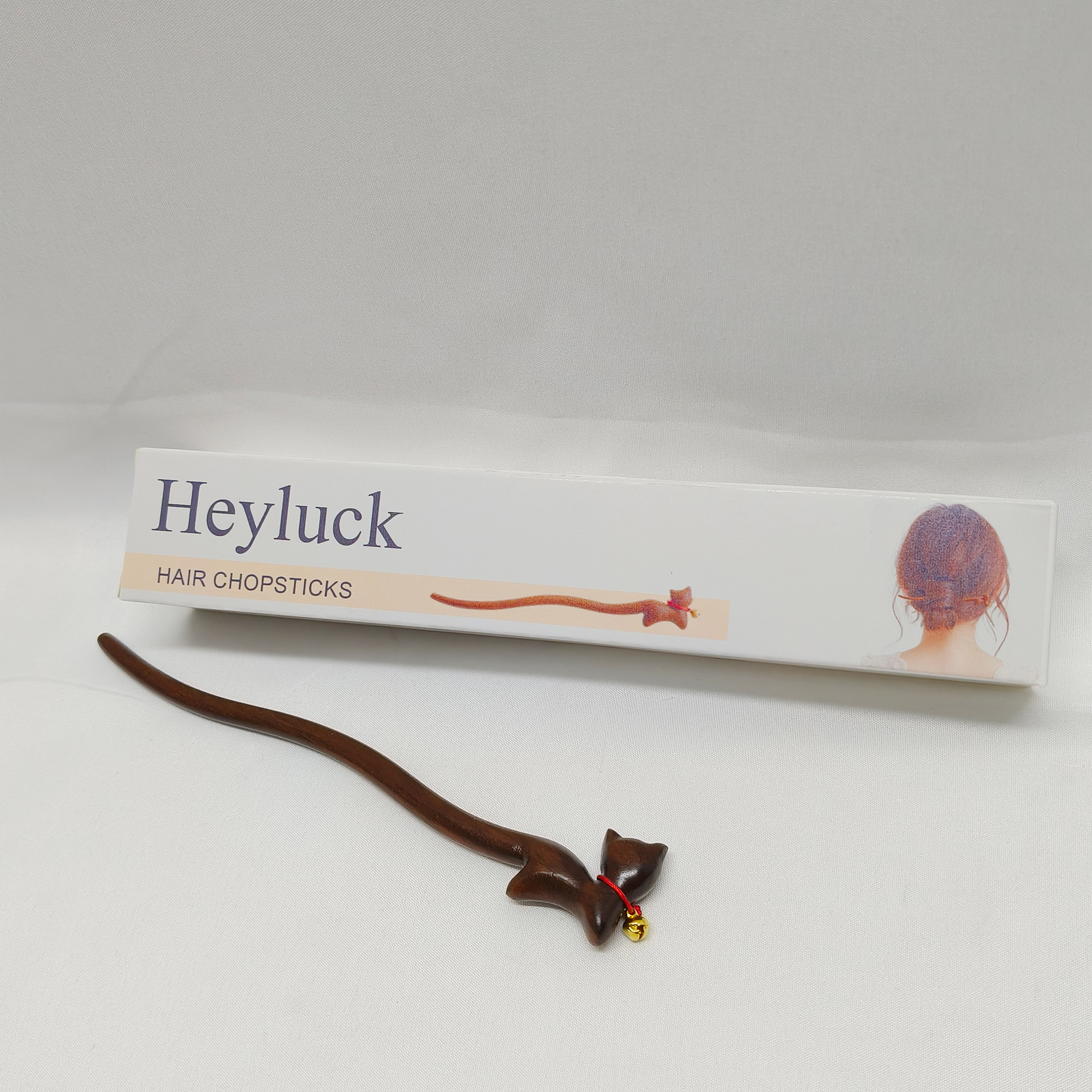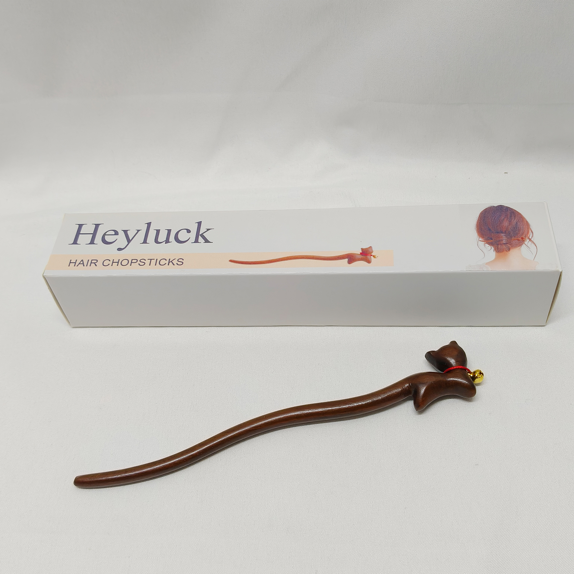 Heyluck-Hair chopsticks,Women Girl’s Hair Stick Wooden Handmade Hair Accessories,Chinese Retro Hairpins cat Decor.